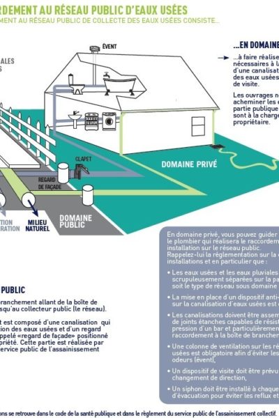 Le branchement fait partie du réseau public et correspond au dispositif qui va de la prise sur la conduite publique jusqu’au système de comptage pour l’eau potable ou au regard pour l’assainissement collectif. […]