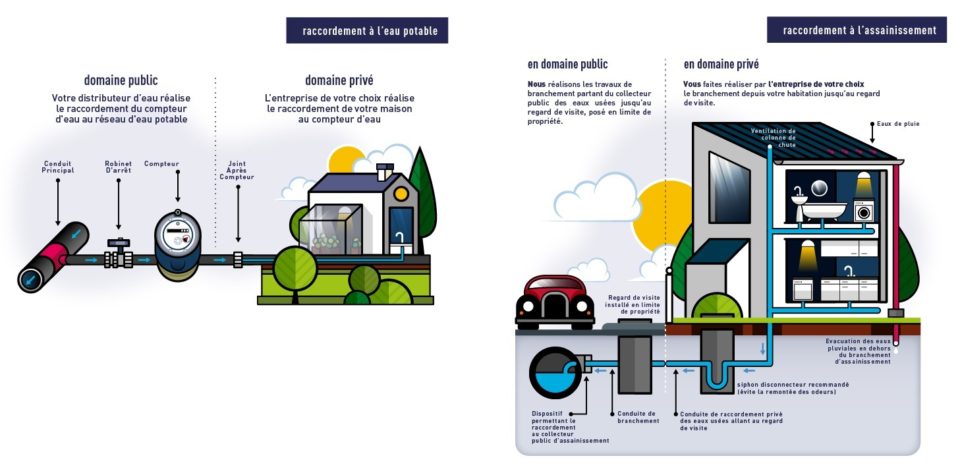 Le réseau privé commence au-delà du joint situé après le système de comptage pour l’eau potable et au-delà du regard pour l’assainissement collectif.